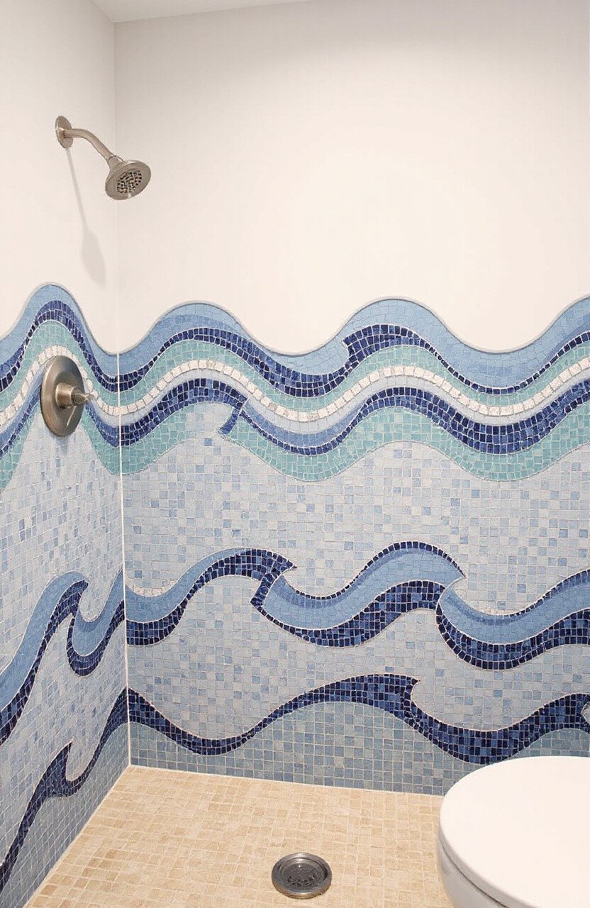 Using small, glass tiles can give the waves a shimmering, dynamic look. This project can be a bit pricey, but the tranquility it adds to your daily routine is worth it.