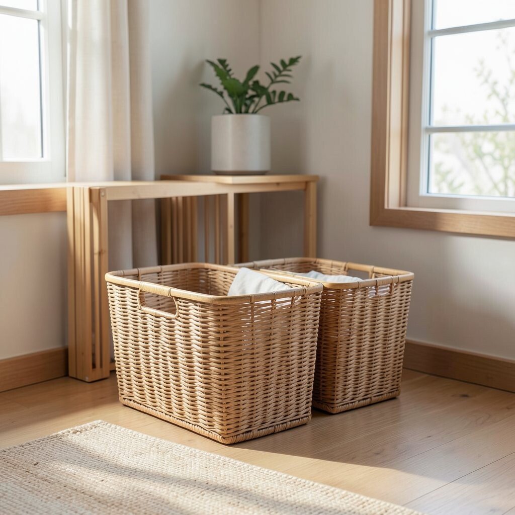 Hemp baskets are durable and eco-friendly. They have a rugged charm that suits rustic or bohemian interiors. Use them for storing laundry or gardening tools.