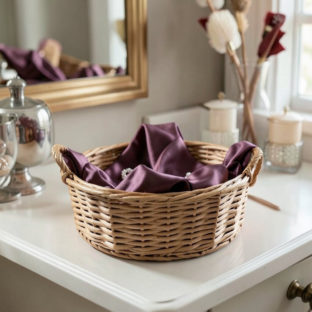 Silk baskets are a touch of luxury. Their smooth texture and sheen make them stand out. Use them to store jewelry or as an elegant addition to your vanity.