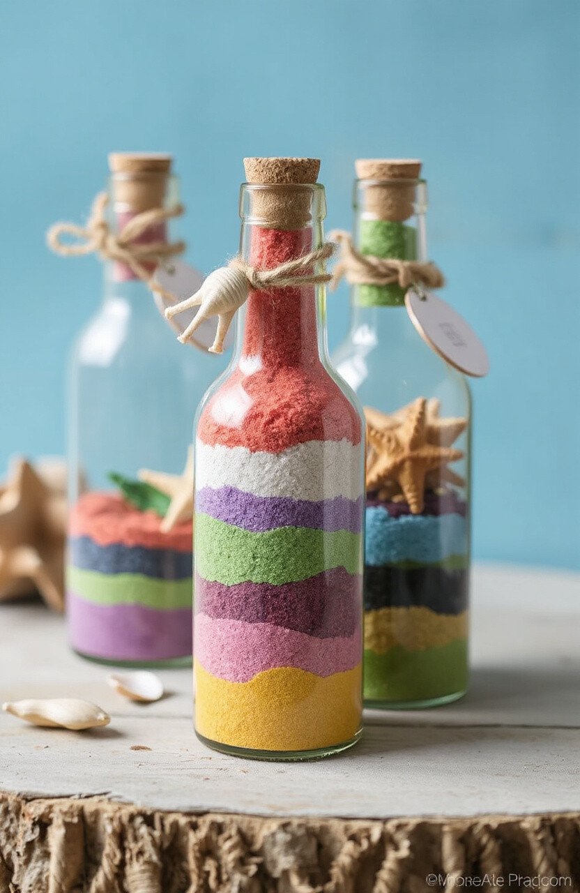 Sand art bottles are a fun and colorful craft that captures the essence of the beach. Layer different colors of sand in a clear bottle to create mesmerizing patterns. Use a funnel for precise layering.