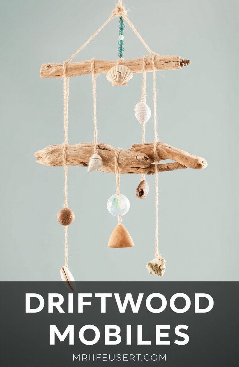 Driftwood mobiles are a perfect way to bring a coastal vibe into your home. Collect pieces of driftwood from a nearby beach and string them together with twine. Add shells, beads, or small sea glass pieces for extra charm.
