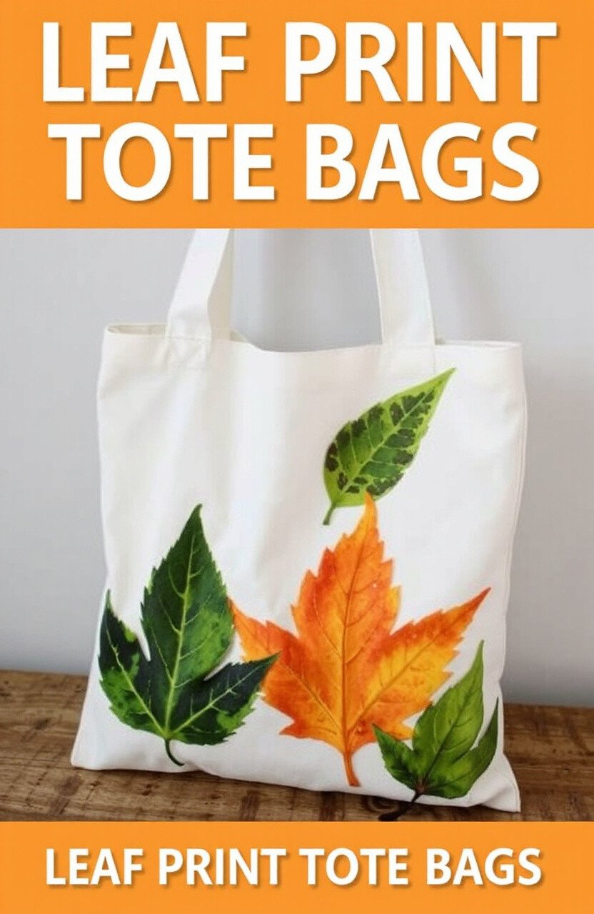Leaf print tote bags are a fantastic way to carry a piece of nature with you wherever you go. All you need are some leaves, fabric paint, and a plain tote bag. The different shapes and sizes of leaves create exciting patterns when pressed onto fabric.