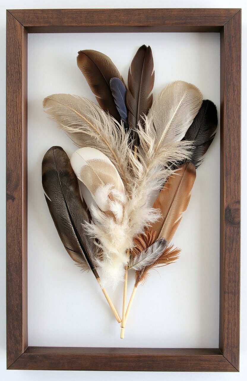 Feather wall art is an elegant way to display natural beauty. Gather feathers and arrange them in a frame or on canvas. The varying textures create dynamic visual interest.