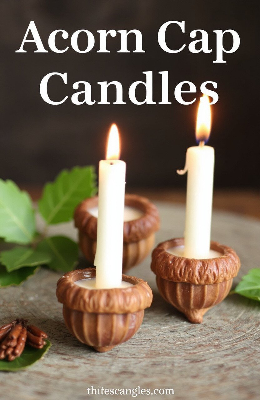 Acorn cap candles are small yet charming additions to any room. Use melted wax and small wicks to create tiny candles inside acorn caps. Their natural look adds a rustic touch to your decor.