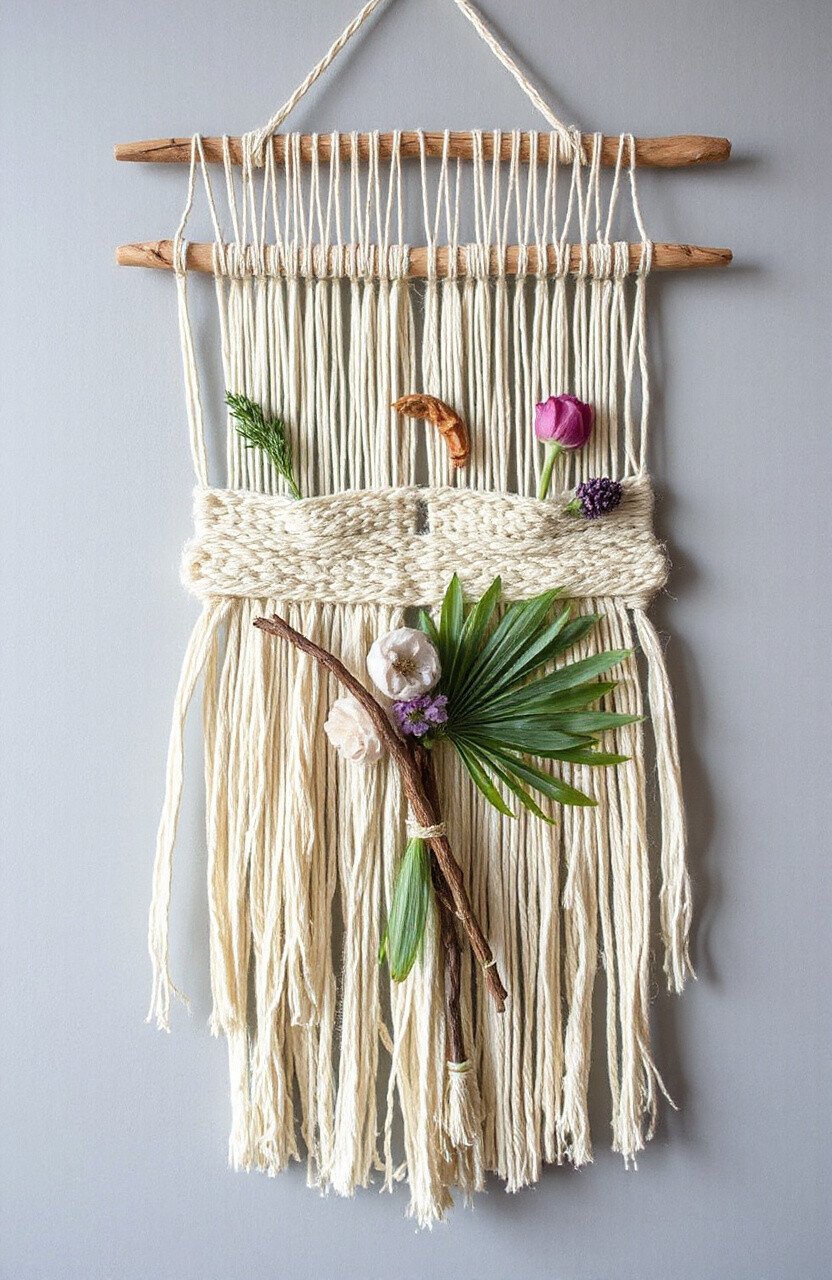 Nature weaving combines traditional weaving techniques with natural materials. Use a handmade loom and weave in grasses, flowers, and twigs. The result is a textured piece of art.