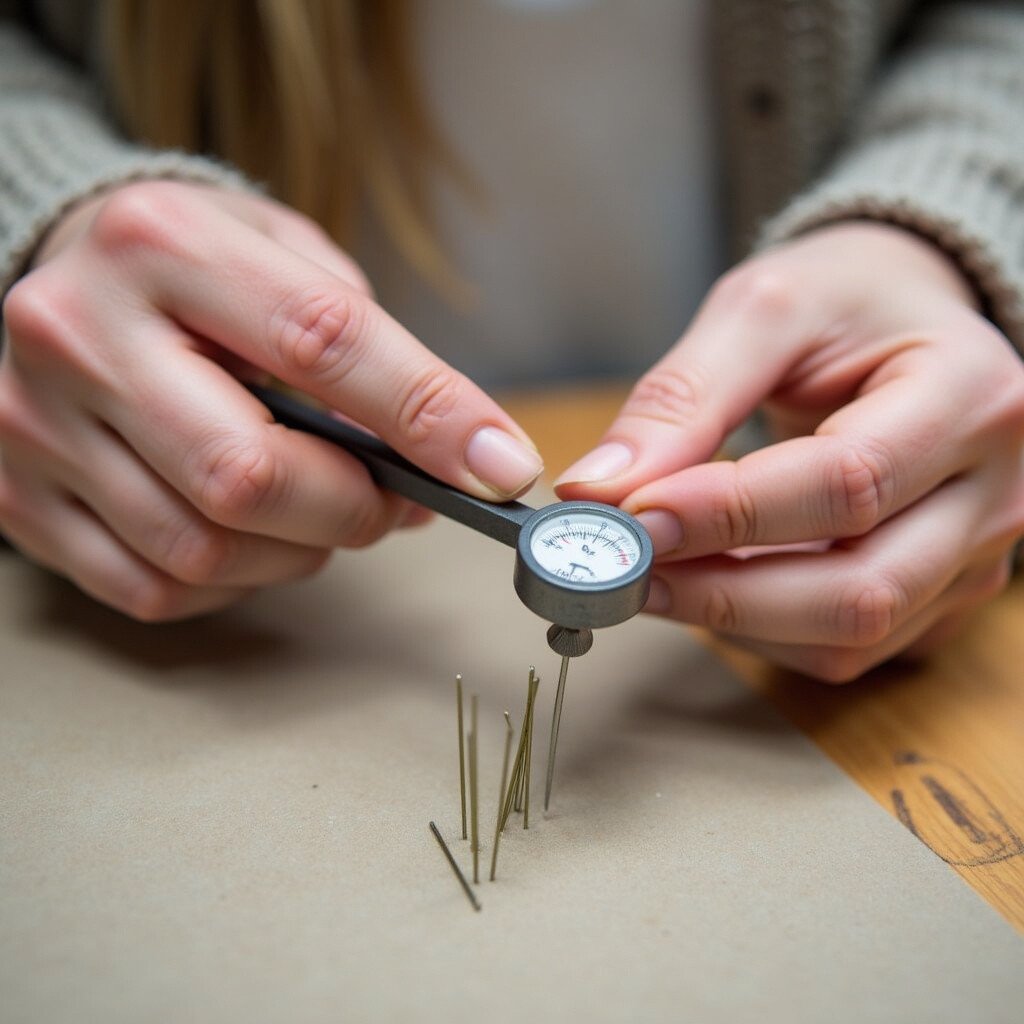 A gauge helps you measure the thickness of your needles. This tool ensures you use the right needle for your wool and project. Gauges are small and easy to use.