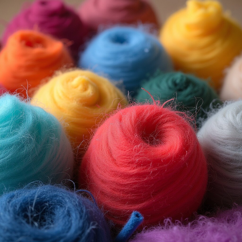 Wool roving is the canvas of needle felting. It comes in vibrant colors and feels soft and fluffy. You can buy it in packs with a variety of colors or in single colors for specific projects.