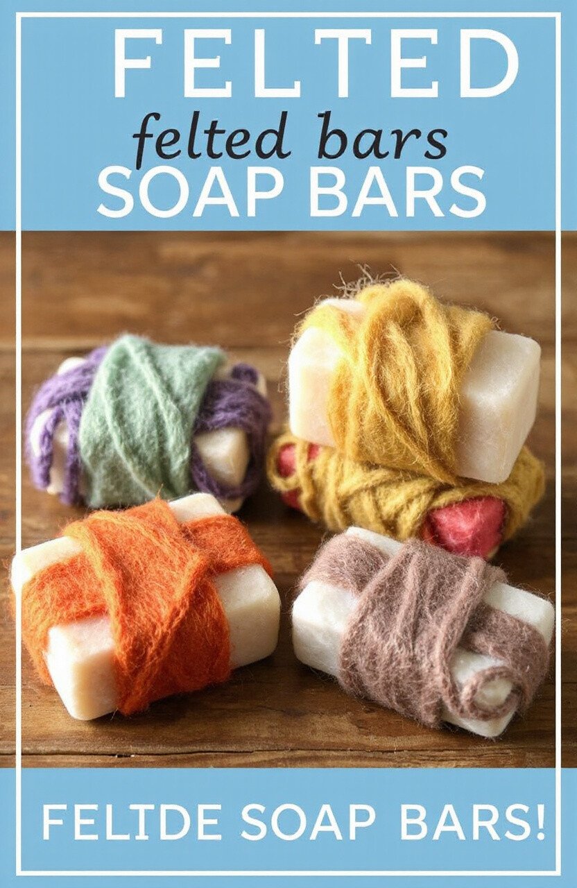 Wrap soap bars in felted wool for a unique scrubber. The wool shrinks with the soap, making it last longer. A practical and pretty bathroom accessory.