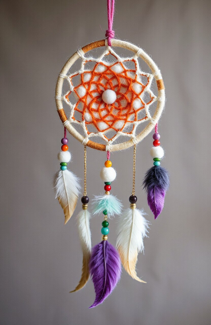 Catch sweet dreams with a felted dream catcher. Create a web with wool and add felted feathers or beads. Hang it above your bed for peaceful nights.