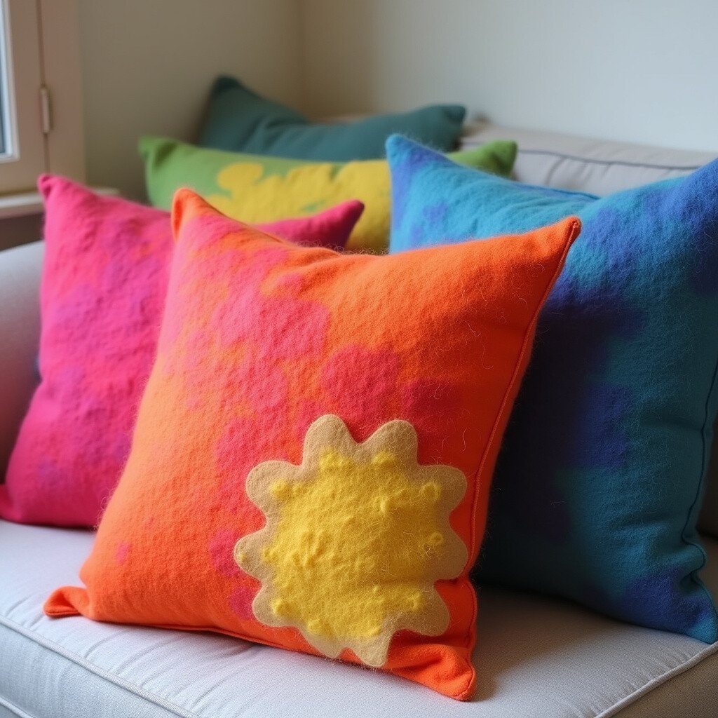 Breathe new life into your living space with neon felted pillows. These plush pillows are perfect for adding color to your couch or bed. Use wet felting to create bold designs or subtle gradients.