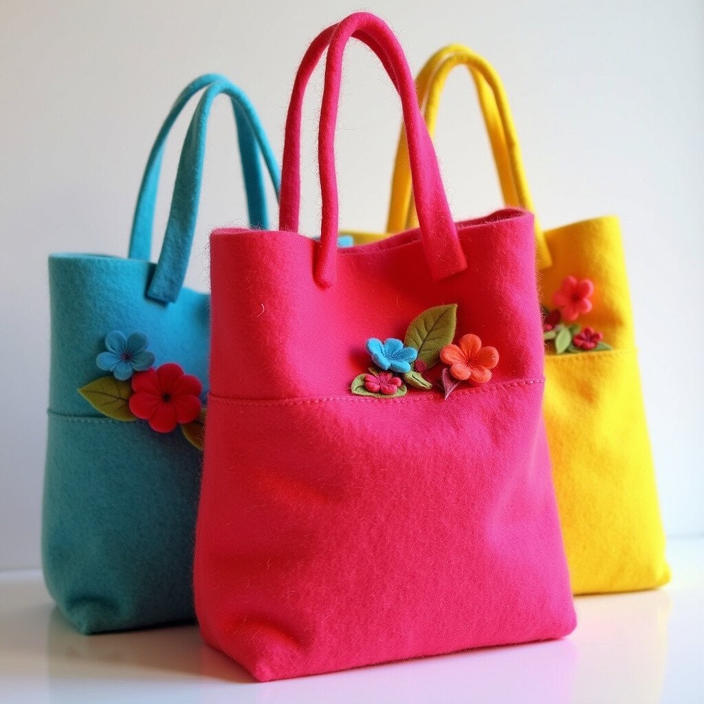 Choose bright, bold colors to make a statement wherever you go. Add pockets or embellishments for extra functionality. These bags are a great way to practice your felting skills on a larger scale.
