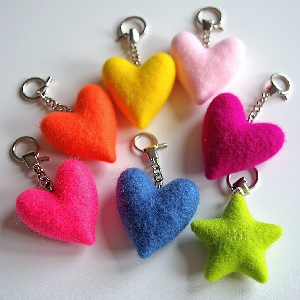 Keep your keys easy to find with these neon felted keychains. Small but striking, they’re a delightful way to carry a piece of your craft wherever you go. Use needle felting to sculpt shapes like hearts or stars in vivid colors.