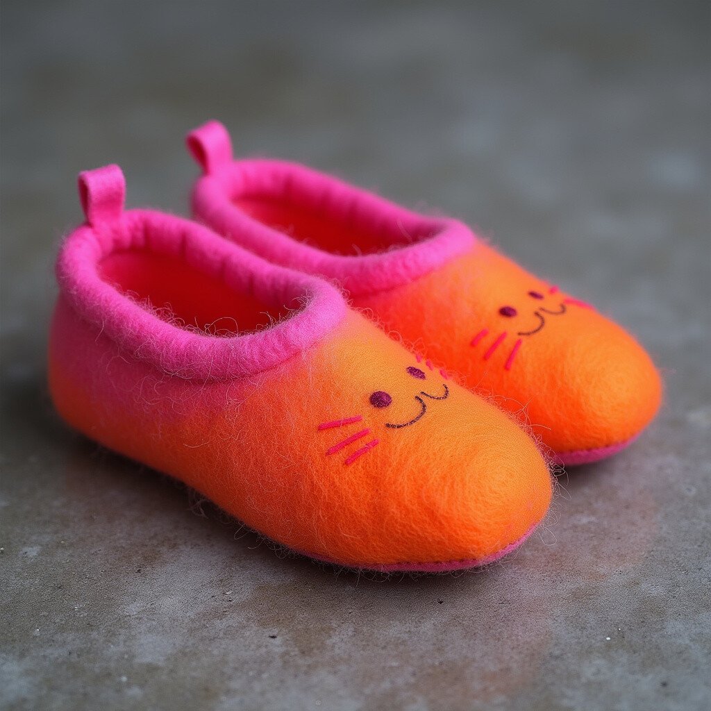 Keep your feet cozy with neon felted slippers. These comfortable slippers are perfect for lounging around the house. Wet felting lets you mold the wool to fit your feet just right.
