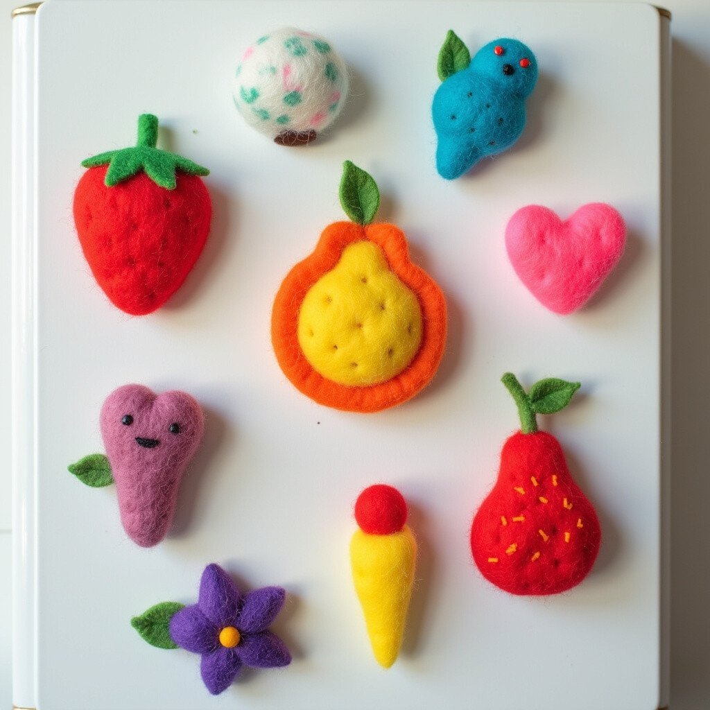 Brighten up your fridge with neon felted magnets. These small, vibrant creations are a delightful way to add personality to your kitchen. Use needle felting to make tiny shapes like fruit, animals, or abstract designs.