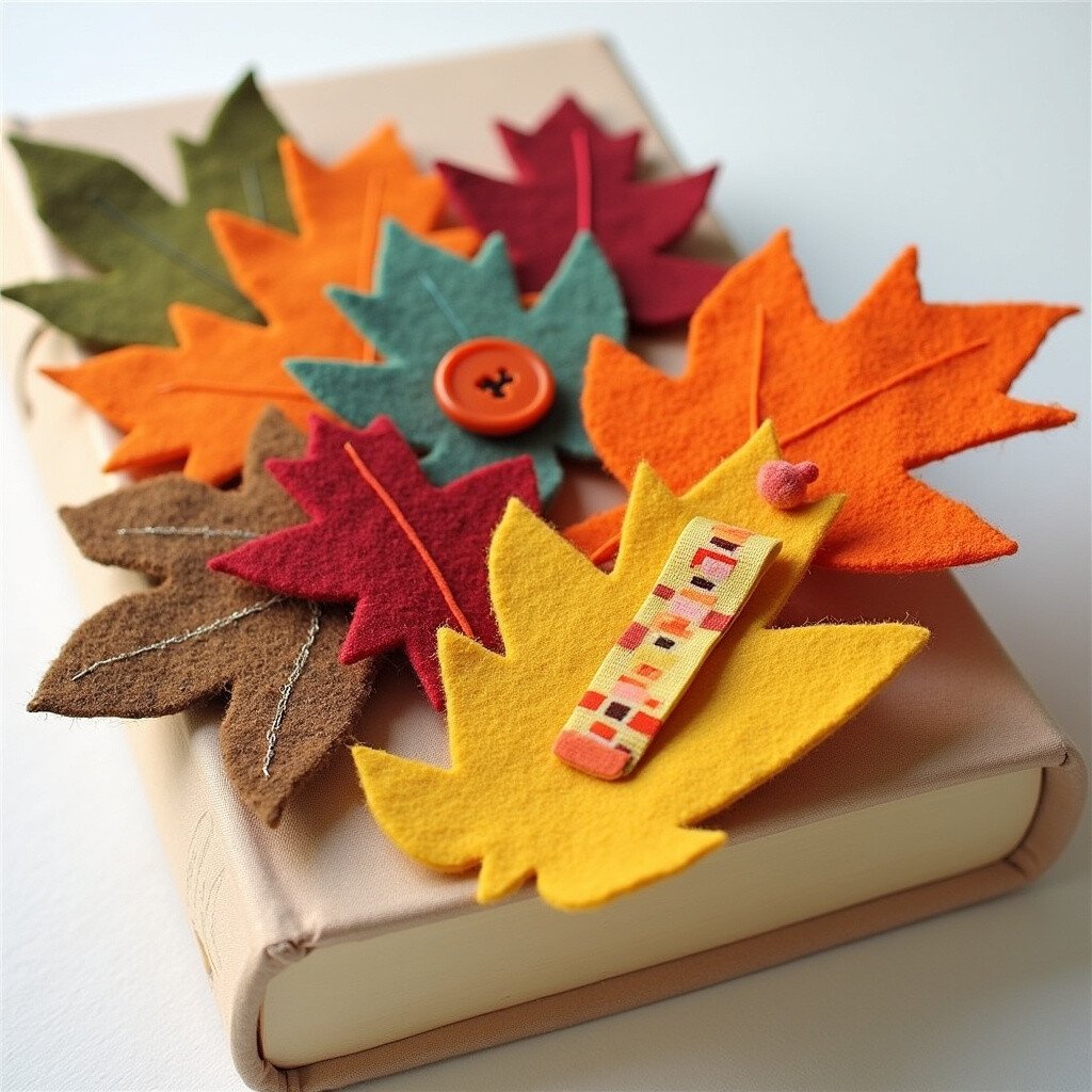 For the book lovers, felt bookmarks are a delightful way to mark your place. Cut out simple shapes like leaves, acorns, or pumpkins, and glue them onto a strip of felt.