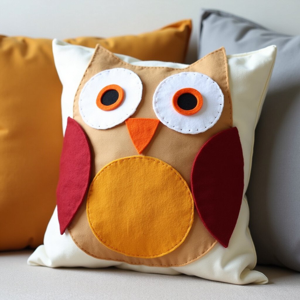 Bring a touch of whimsy to your living room with an owl felt pillow. Cut out simple owl shapes, layering different colors for the eyes, beak, and wings. Glue the pieces onto a plain pillowcase for an easy upgrade.