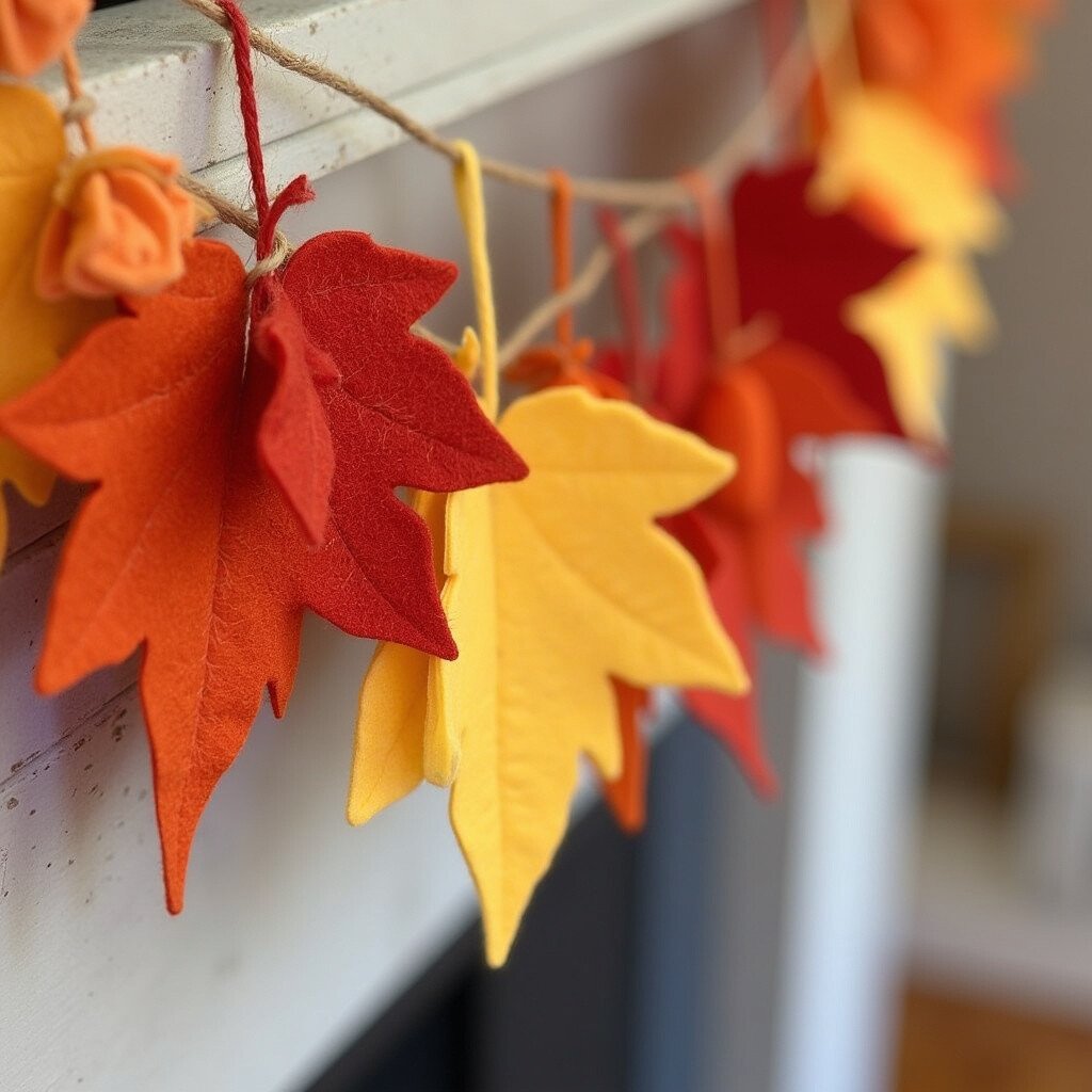 Imagine a cascade of colorful felt leaves draping across your fireplace. This felt leaf garland is an easy way to bring autumn indoors. Choose a variety of felt colors like burnt orange, mustard yellow, and deep red.