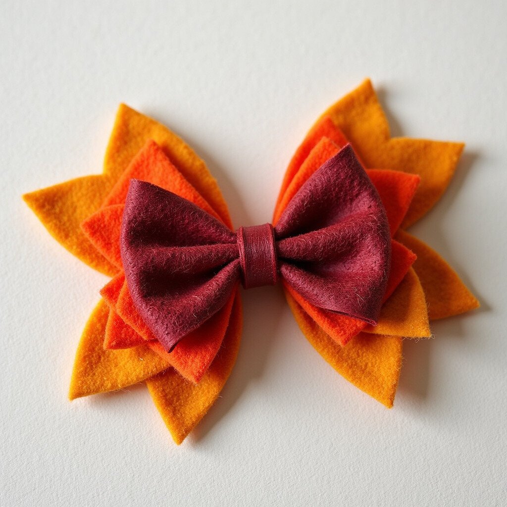 Craft stylish fall felt bow ties that can be worn or used as hair accessories. Cut out bow shapes, layer them for thickness, and secure with a piece of felt wrapped around the center.