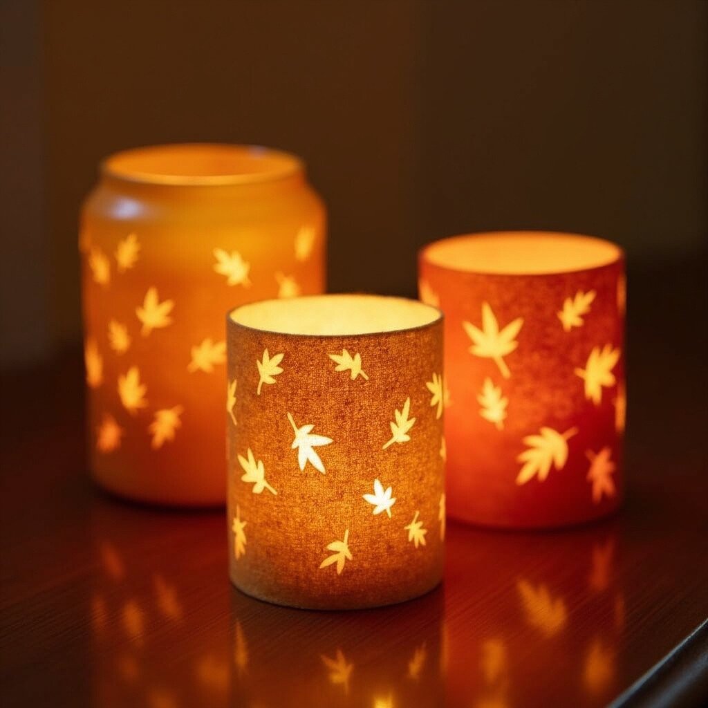 Cut out leaf patterns to let the candlelight shine through, creating a cozy atmosphere for any room. These holders are an inexpensive way to add elegance and warmth to your space.