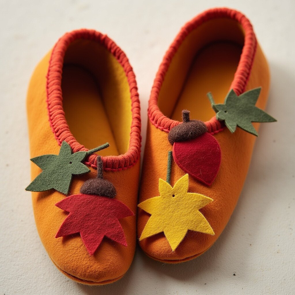 Keep your feet warm with cozy felt slippers that you can craft without a single stitch. Cut the slipper shapes from thick felt, and glue the pieces together. Add felt leaves or acorns for decoration.