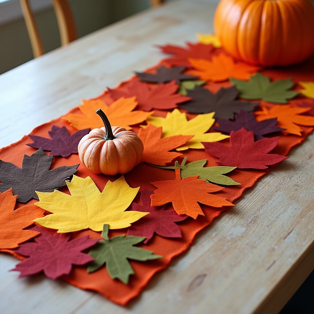 Create a harvest-themed table runner with felt to enhance your dining experience. Cut out various fall icons like cornucopias, pumpkins, and leaves, and arrange them on a long piece of felt.