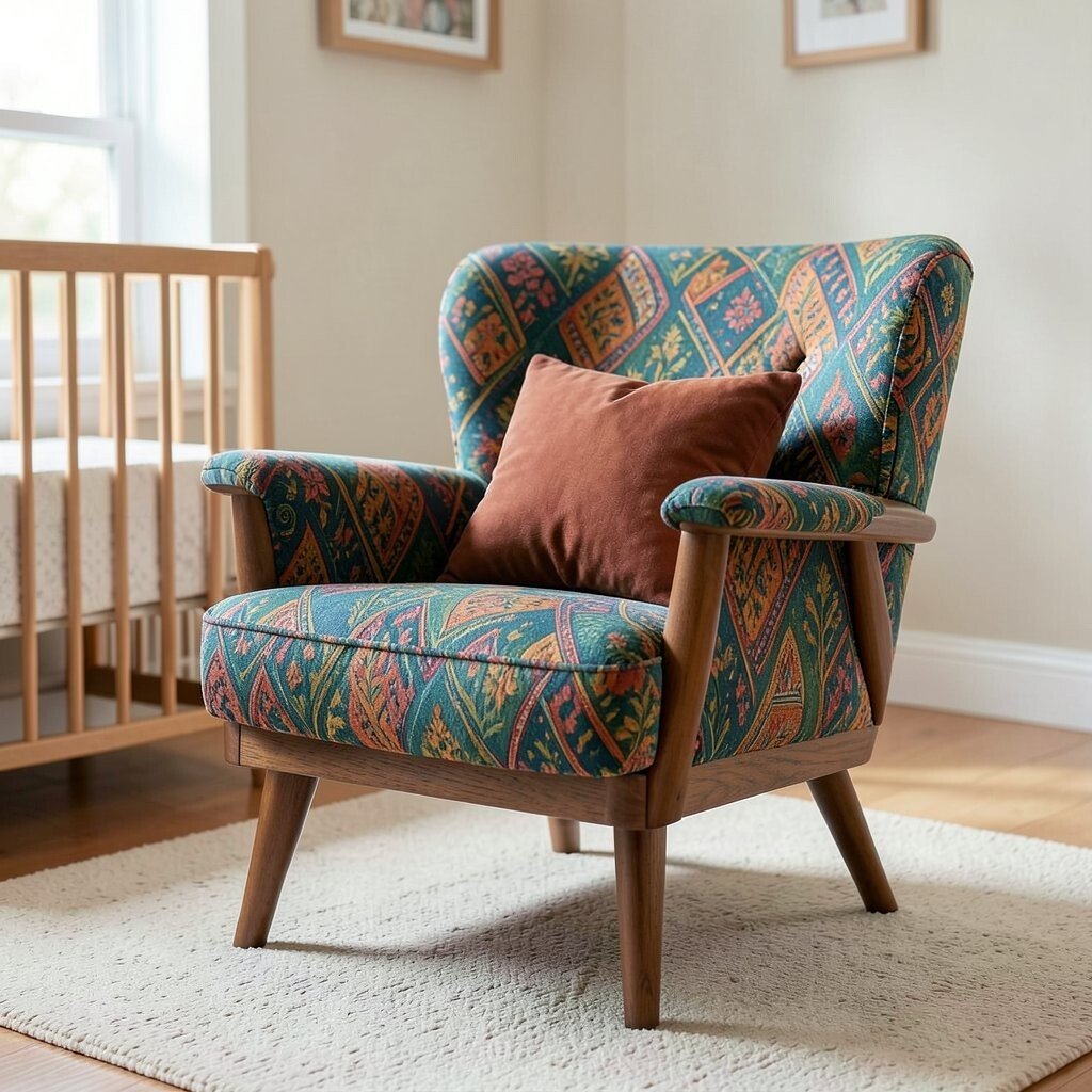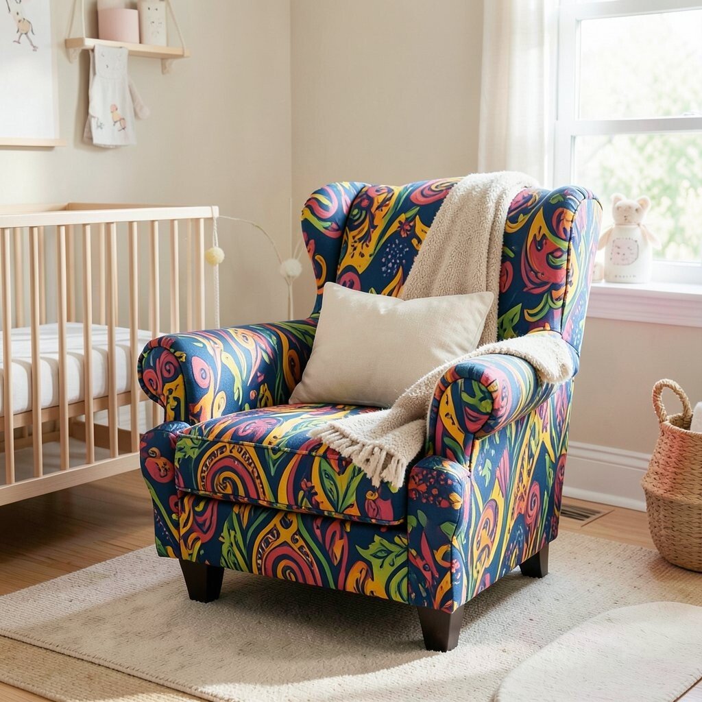 For those who love to make a statement, an artistic accent chair is a must. These chairs come in bold patterns and vibrant colors. They are perfect for adding a creative touch to your nursery.