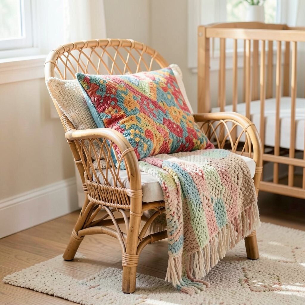 A rattan chair is perfect for summer nurseries, offering a breezy feel. Look for pieces with intricate weavings or unique shapes. They are easy to move around and add a touch of nature indoors.