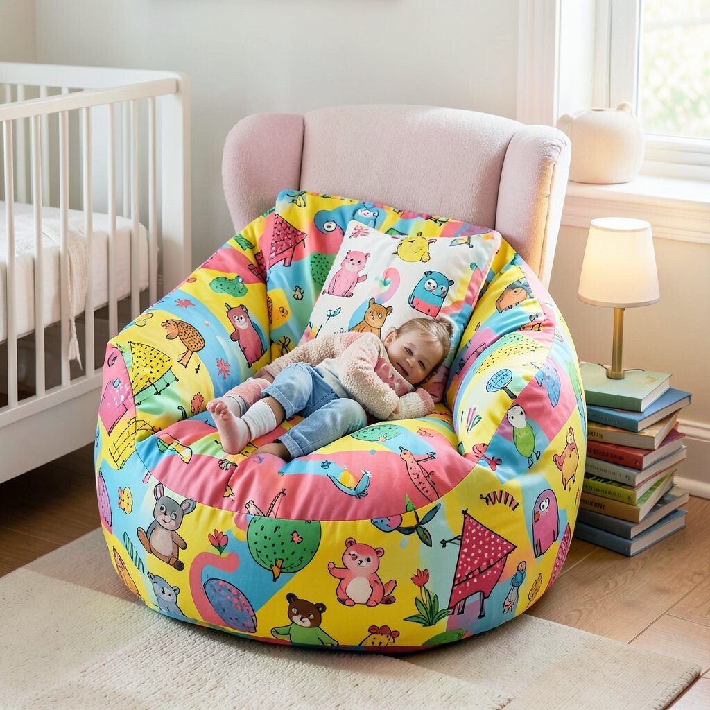 Choose a bean bag with a washable cover for easy maintenance. Bright, bold colors or quirky patterns can add a playful vibe to your nursery.