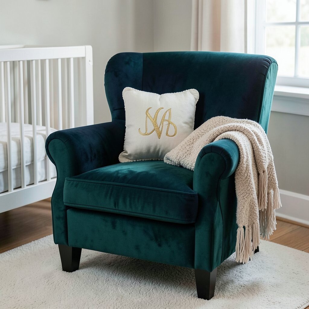 Choose a rich jewel tone like emerald, sapphire, or ruby for a pop of color. Velvet chairs can be a bit pricey, but they add instant elegance and warmth to your nursery.