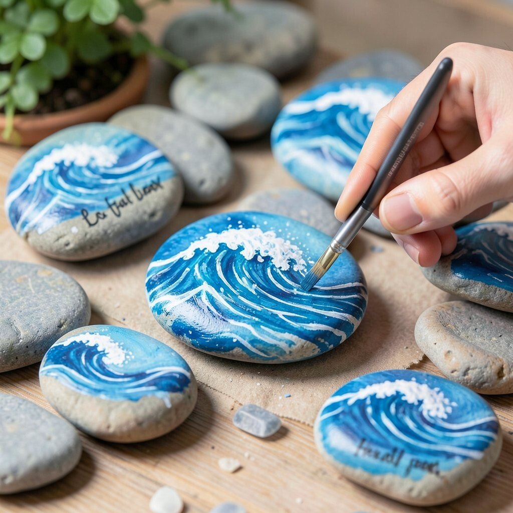 Transform ordinary rocks into miniature works of art with ocean wave paintings. Use vibrant blues and whites to mimic crashing waves. These painted rocks are great for decorating gardens or as paperweights.
