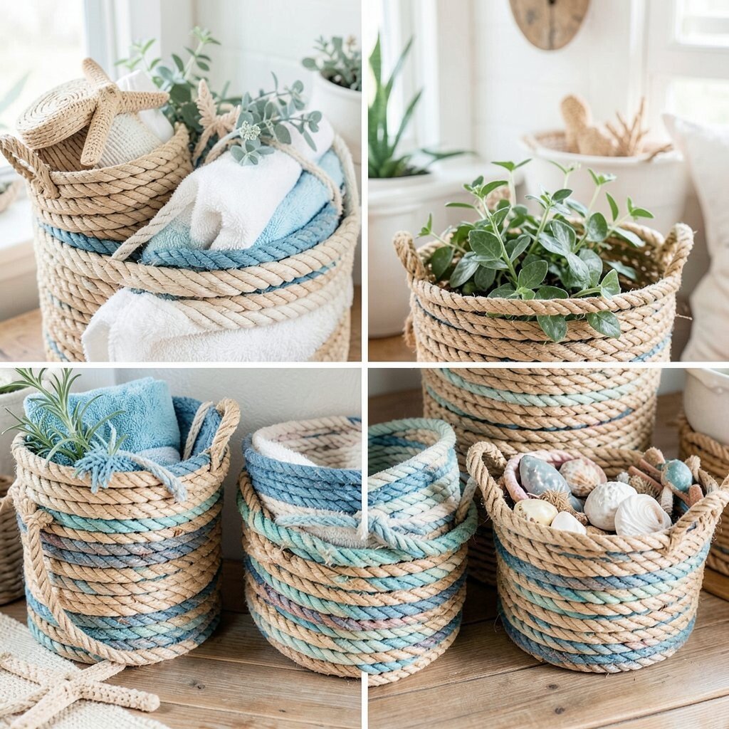Organize with style using nautical rope baskets. Use thick rope to create sturdy, stylish baskets that add a coastal charm to your home. Perfect for storing towels, toys, or even plants.