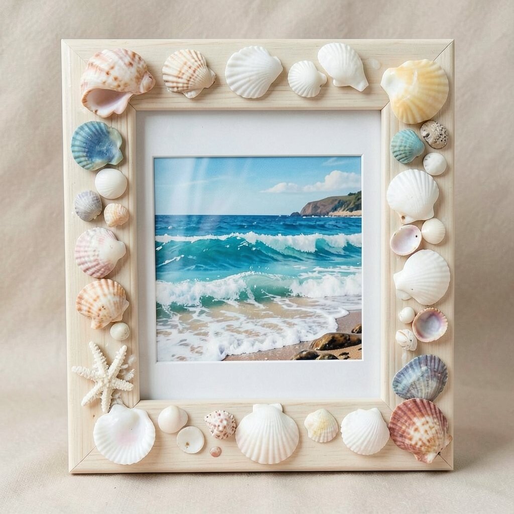 Frame your favorite memories with seashell picture frames, combining the beauty of the ocean with cherished moments. Glue shells around a plain frame to give it a coastal touch. Each frame becomes a unique keepsake.