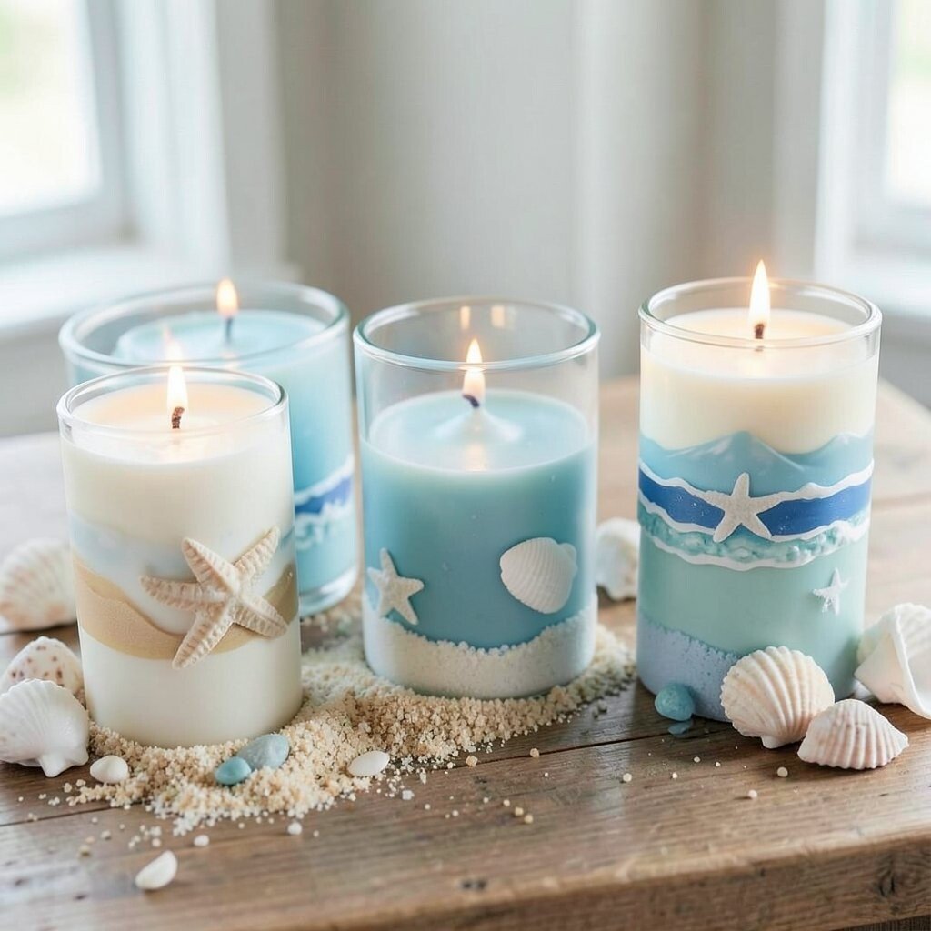 Fill your home with the fresh scent of the ocean with homemade candles. Use sea-inspired scents like saltwater, coconut, or driftwood. These candles create a calming atmosphere, reminiscent of lazy beach days.