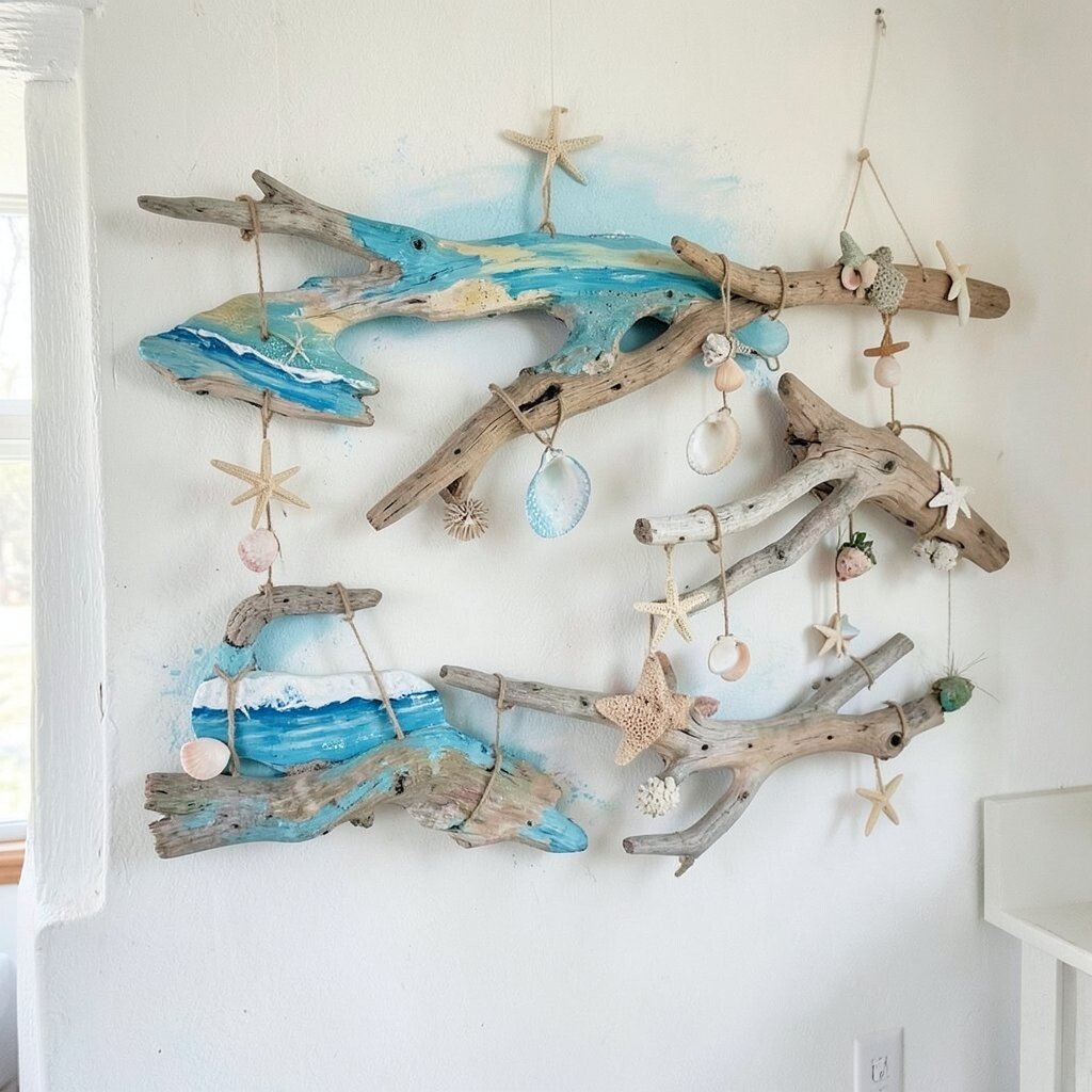 Bring the beach indoors with driftwood wall art that reflects the raw beauty of the ocean. Each piece of driftwood has its own story, washed ashore and shaped by the sea. Arrange them into creative patterns or shapes that resonate with you.