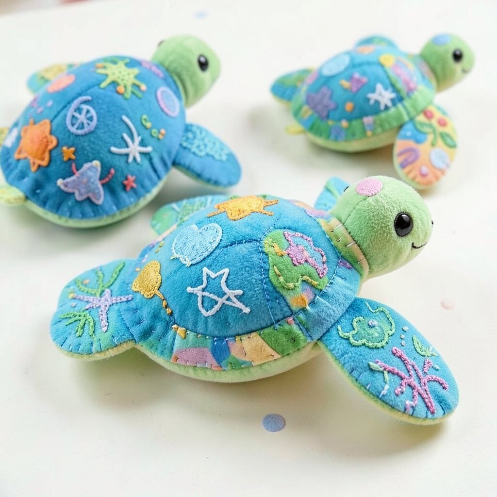Sewing plushies is a relaxing activity, perfect for beginners. Personalize each turtle with embroidery or fabric paint for added character.