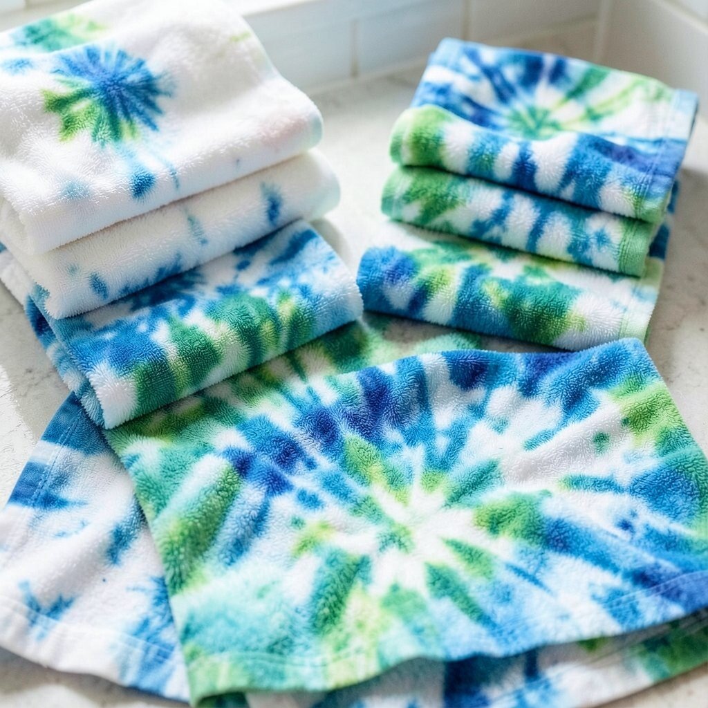 Tie-dyeing is a fun and messy craft that anyone can enjoy. Each towel is unique, and you can experiment with different folding techniques for various patterns.