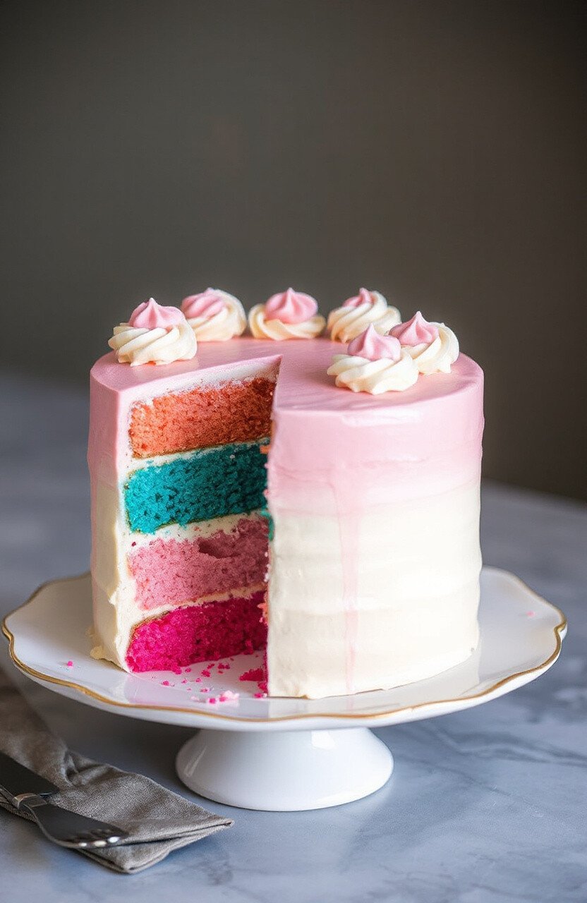 Use food coloring to tint each layer of batter, and stack them to create the ombre effect. Top it off with a smooth frosting, and you’ll have a masterpiece that’s as delicious as it is beautiful.