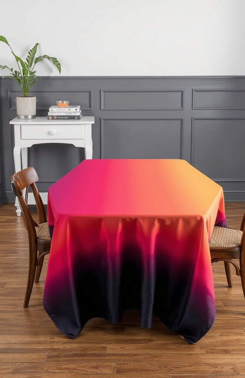 A dining table can be transformed with an ombre tablecloth. The gradual shift in colors can set the mood for any meal.