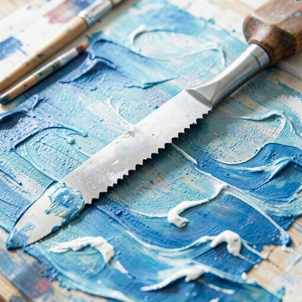 A serrated palette knife adds texture and interest to your paintings. The jagged edges create unique patterns that catch the eye.