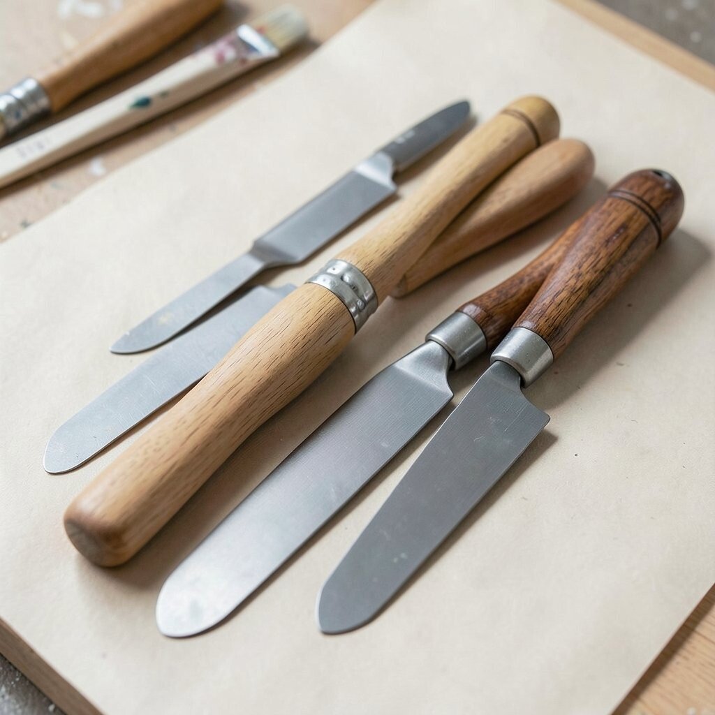 A plastic palette knife set is ideal for beginners who want to explore without worry. They’re affordable and come in various shapes and sizes.