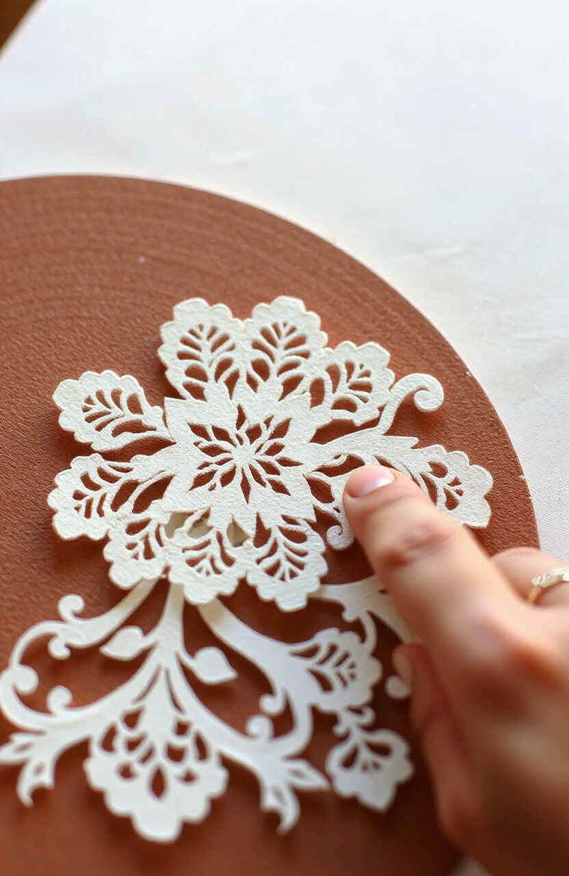 Intricate lace cutting involves creating delicate lace-like patterns from paper. It’s like making lace without thread.