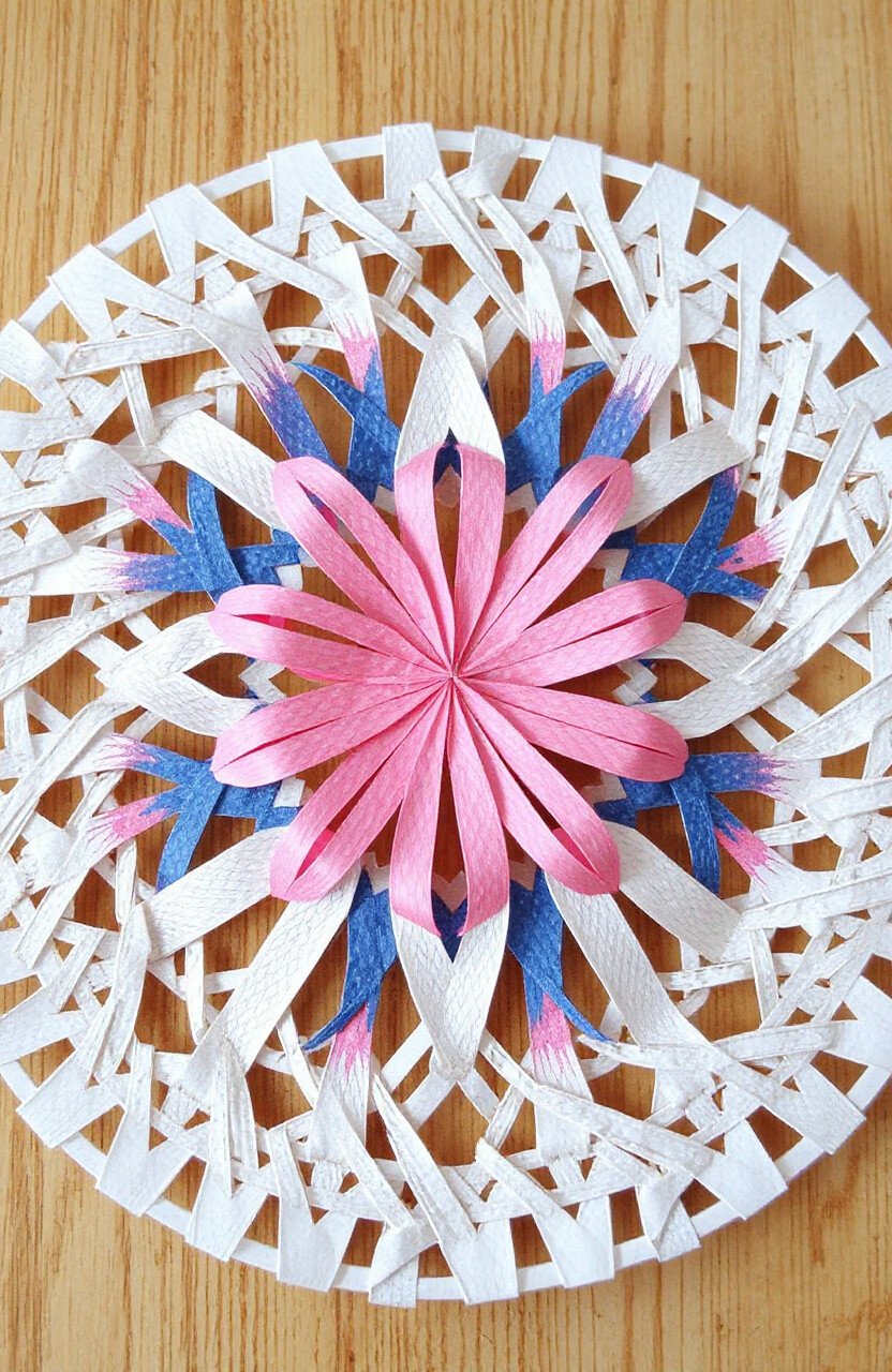 Paper weaving involves interlacing strips of paper to create patterns. It’s like basket weaving with paper strips.
