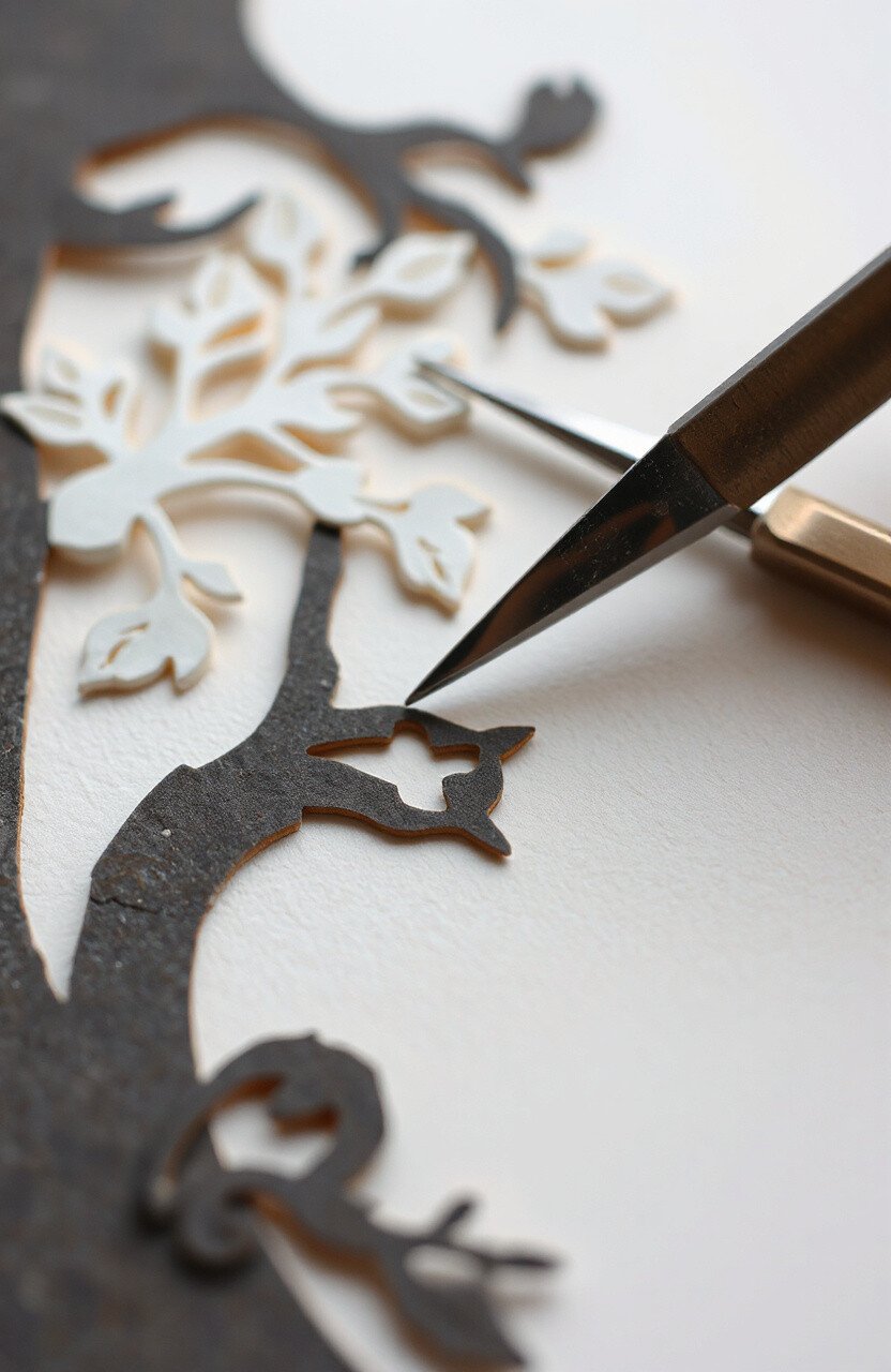 Perfect for wedding invitations or delicate decorations. All you need is a sharp blade and a steady hand. It’s a beautiful way to add elegance and charm to your crafts.