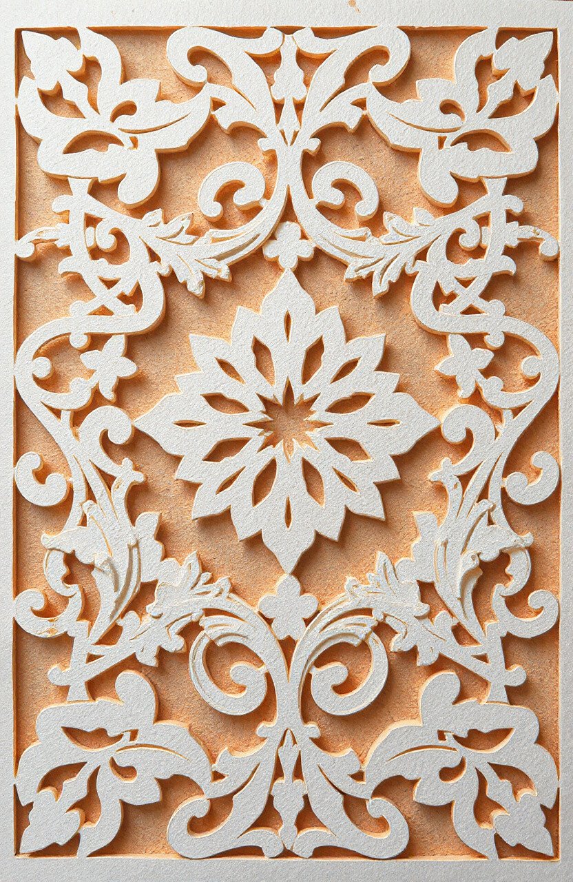 Layered paper cutting involves stacking multiple sheets with cut designs to create depth. It’s like building a paper sandwich with art.