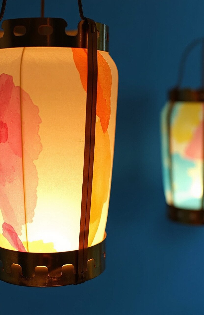 Paint plain lanterns with watercolor paints, blending colors gently. This is an easy way to add an artistic touch to your home. Perfect for art lovers.
