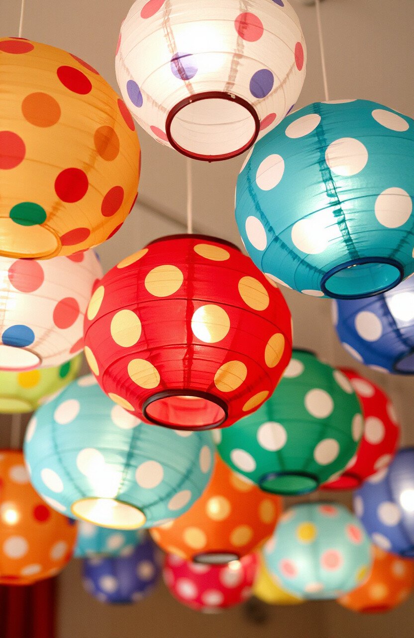 Polka dot lanterns are all about fun and whimsy. These cheerful patterns are sure to bring a smile to anyone’s face.