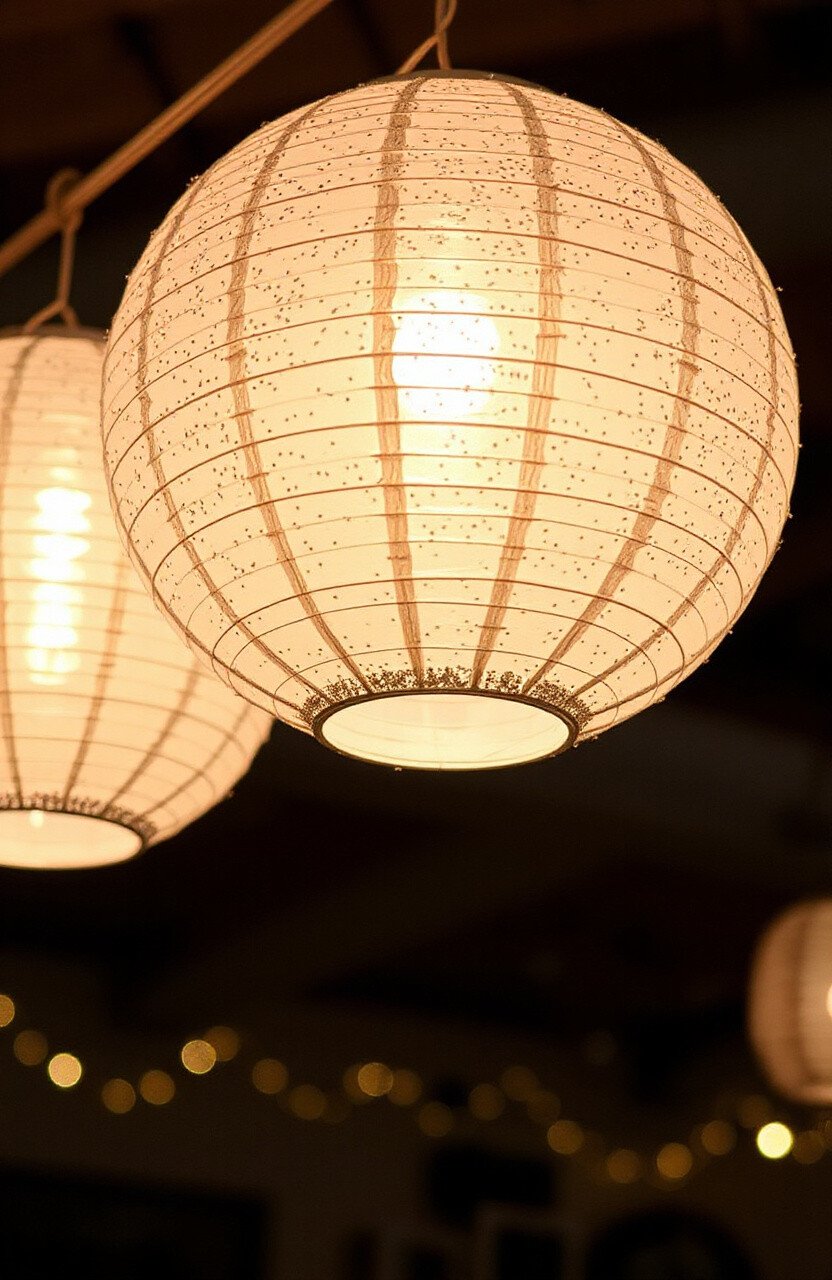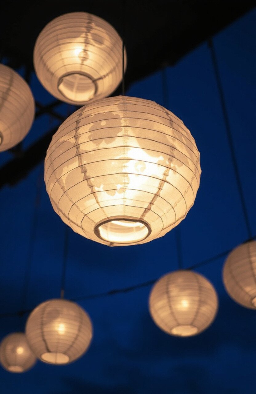 Think of a serene, peaceful room with a soft glow casting gentle shadows. Classic white paper lanterns fit perfectly in any décor, offering a timeless elegance. They are budget-friendly and easily found in most stores.