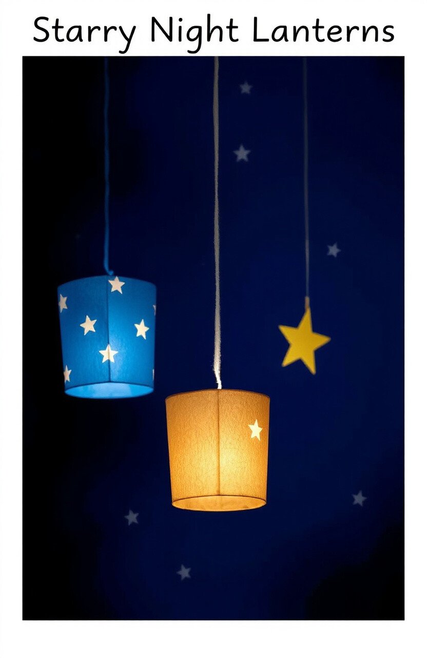 Cut out star shapes from your lanterns and let the light peek through. Use blue paper for a night sky effect. They’re calming and perfect for bedtime stories.
