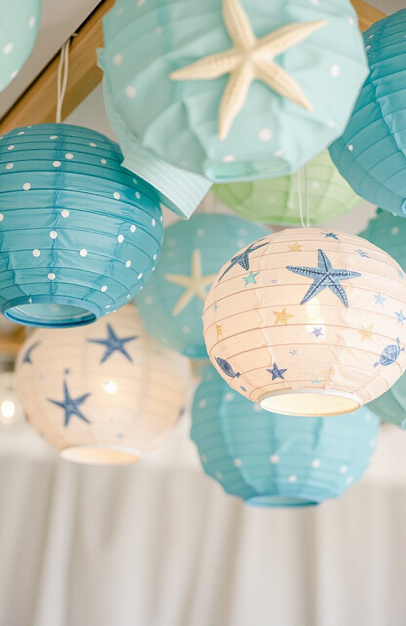 Capture the essence of the ocean with sea-themed lanterns. Think blues, greens, and nautical patterns.