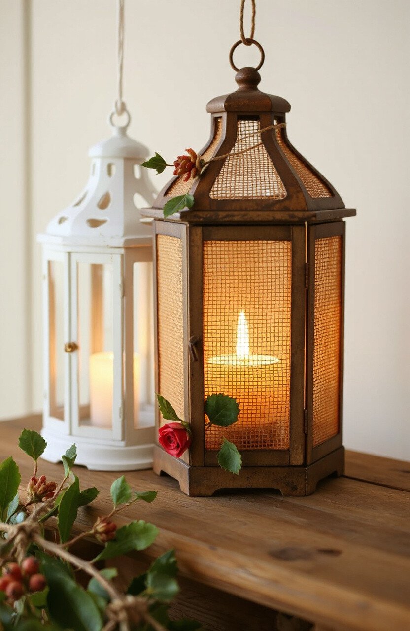 Rustic lanterns bring a touch of the countryside to your home. Use materials like burlap or twine for a cozy feel.